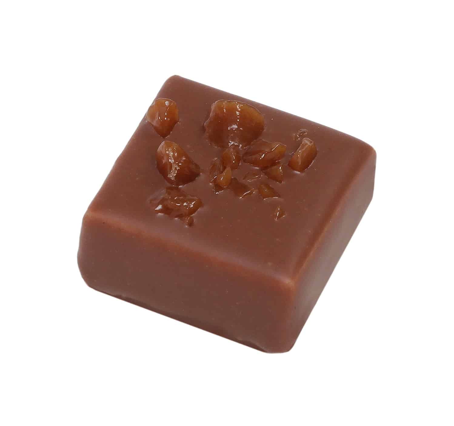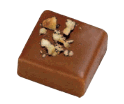 Enrobage : chocolat lait (sucre, beurre de cacao, lait entier en poudre, fèves de cacao, émulsifiant : lécithine de tournesol, extrait naturel de vanille).