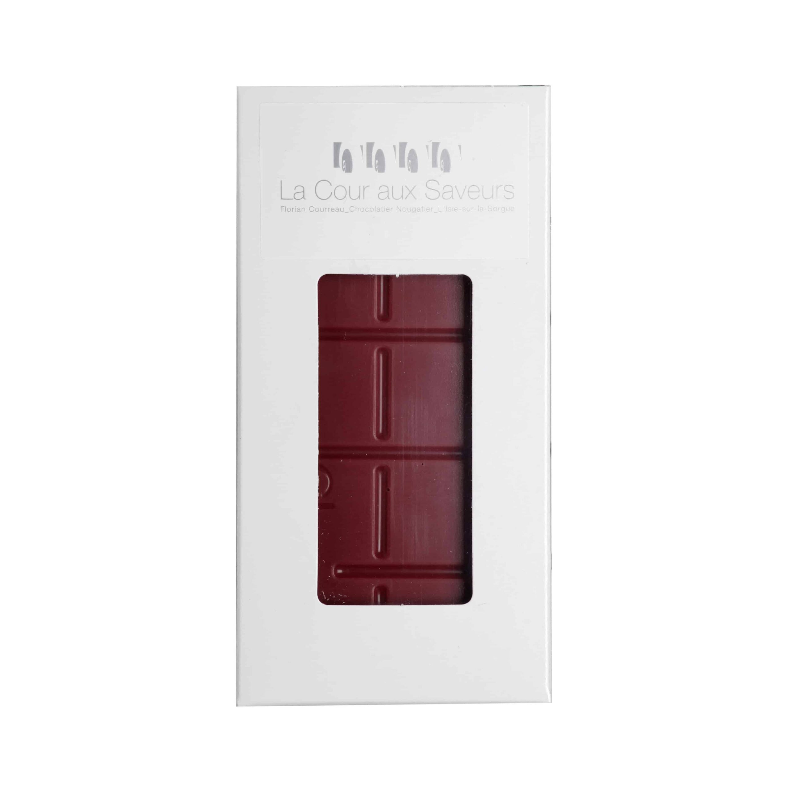 Ingrédients : sucre, beurre de cacao 35,9%, framboise en poudre 11,5%, émulsifiant : lécithine de tournesol.