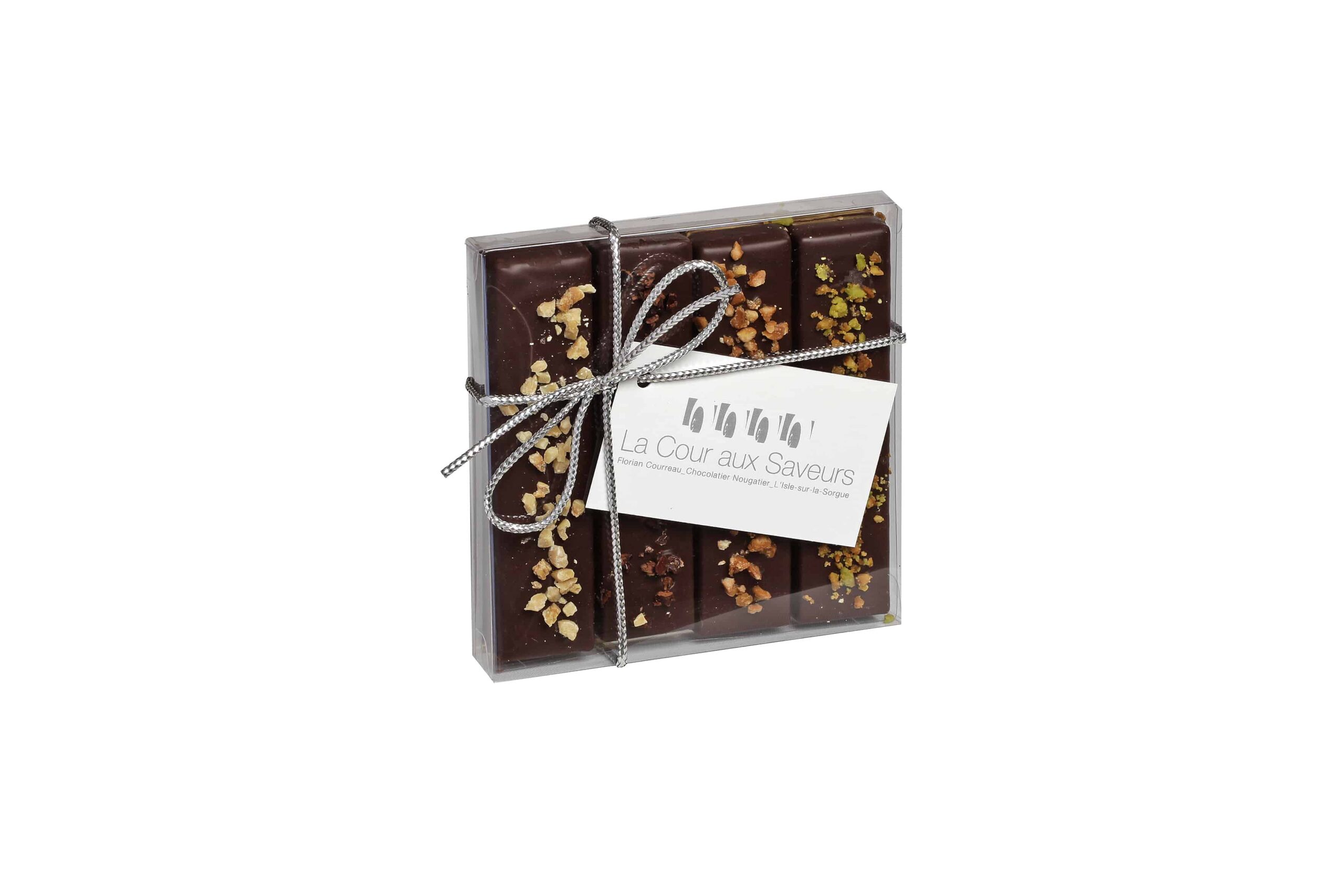 L’association d’une pâte délicate aux notes fruitées, enrobée de chocolat noir. Vanille, Citron, Orange et Melon composent la base de cette gourmandise.